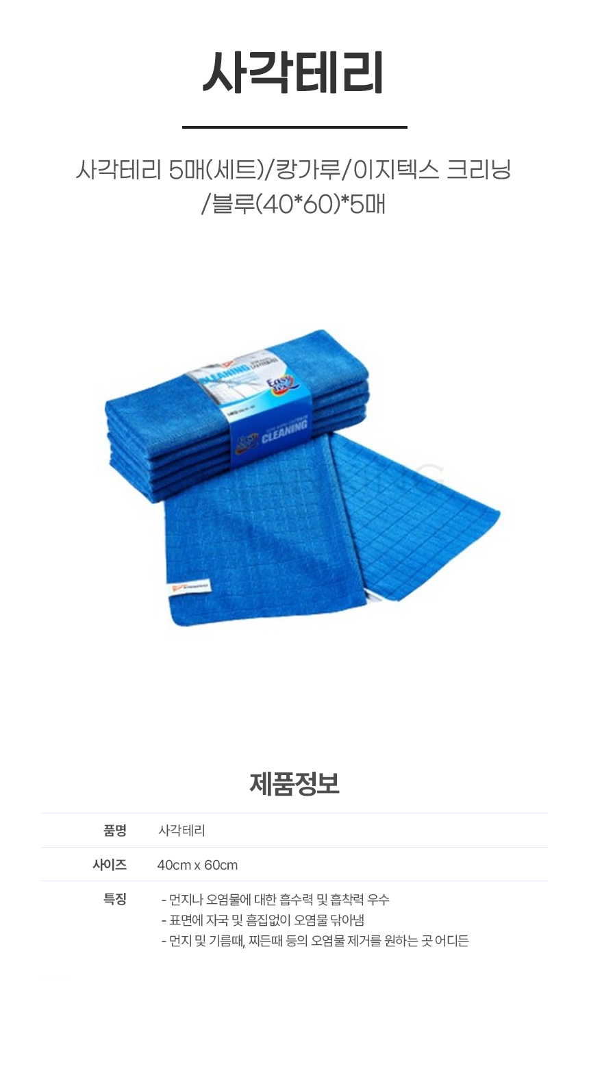 • 사각테리 5매(세트)/캉가루/이지텍스 크리닝/블루(40*60)*5매