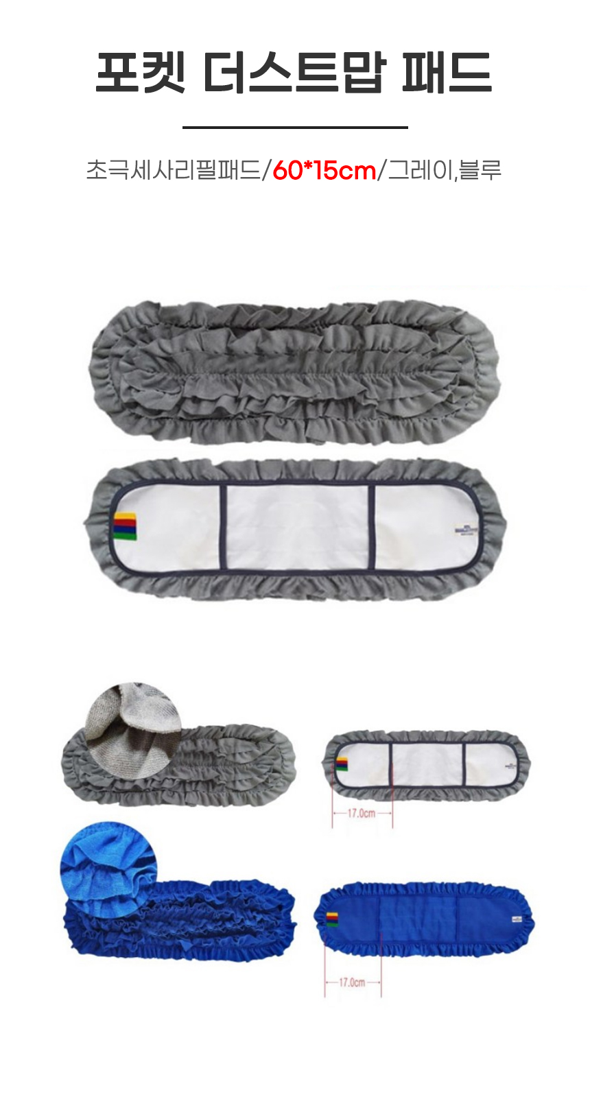 • 포켓 더스트맙 패드/초극세사리필패드/60*15cm/그레이,블루