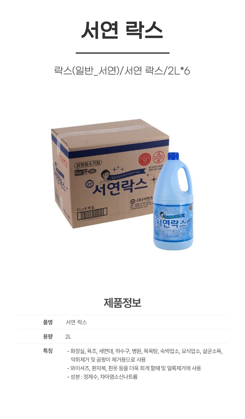 • 락스(일반_서연)/서연 락스/2L*6