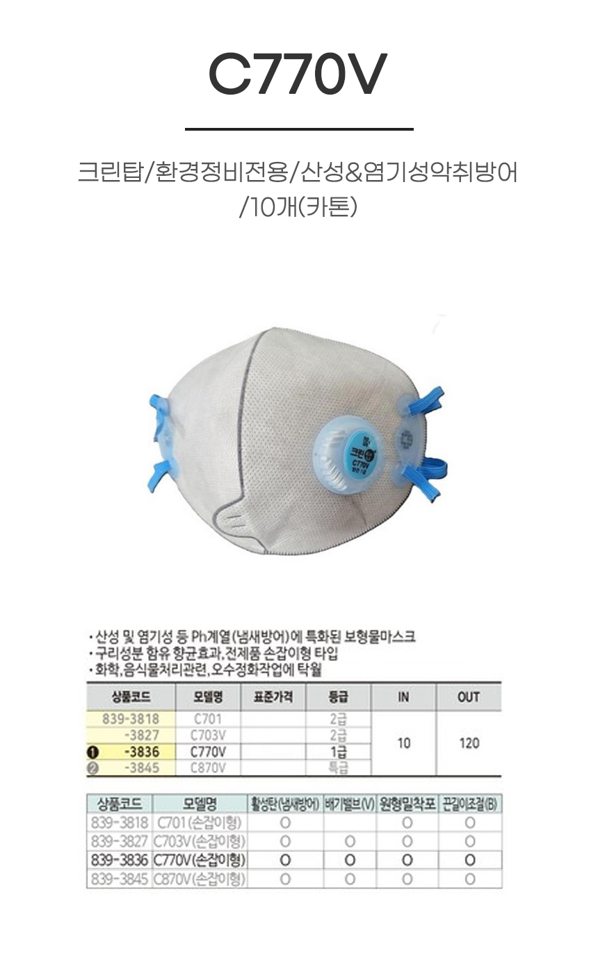 • C770V/1급/크린탑/환경정비전용/산성&염기성악취방어/10개(카톤)