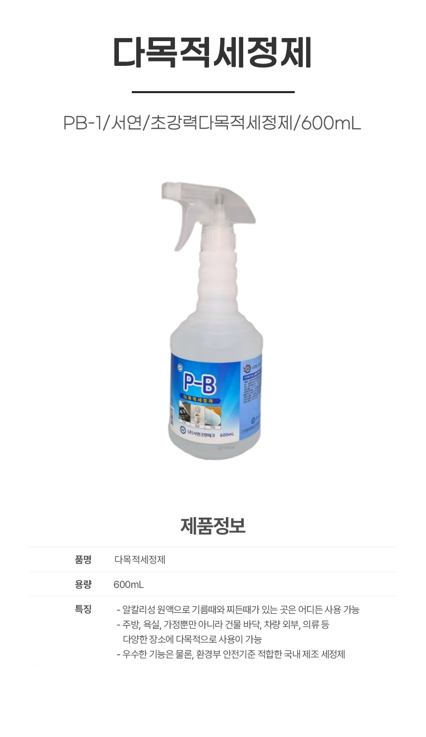 • 다목적세정제/PB-1/서연/초강력다목적세정제/600mL