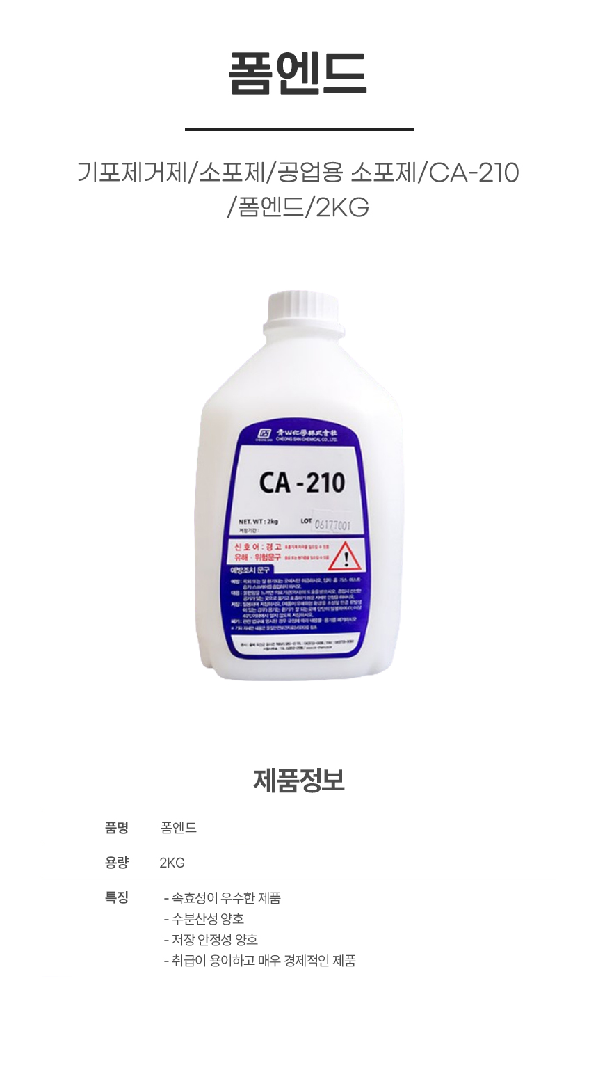• 기포제거제/소포제/공업용 소포제/CA-210/폼엔드/2KG