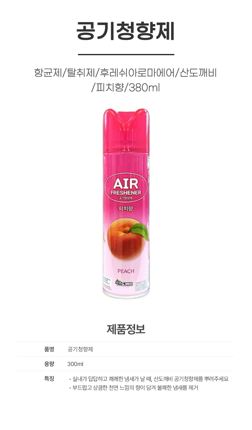 • 항균제/탈취제/후레쉬아로마에어/산도깨비/피치향/380ml